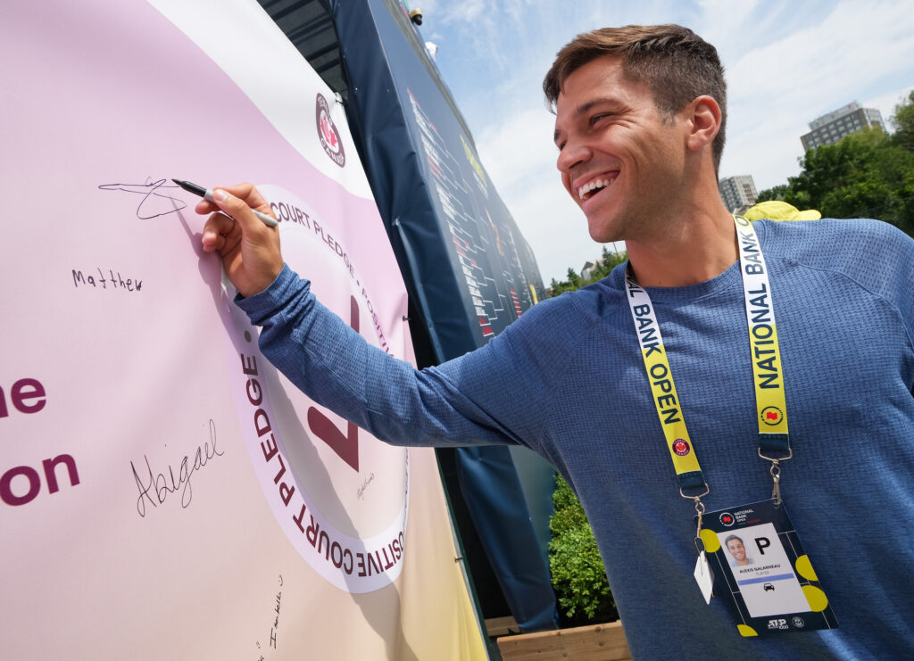 National Bank Open ticket buyers, tournament staff, volunteers, media and players, as well as those following on social media around the world, were invited to sign The Positive Court Pledge – a written commitment to ensure a positive environment for all athletes performing in Canada, making them feel supported and uplifted. This pledge is a way to promote a safe environment, but also to break the taboo and open a discussion about the importance of mental health in sports. Tennis Canada has begun in earnest to extend the reach of the Positive Court Pledge to events of all ages and categories across the country.